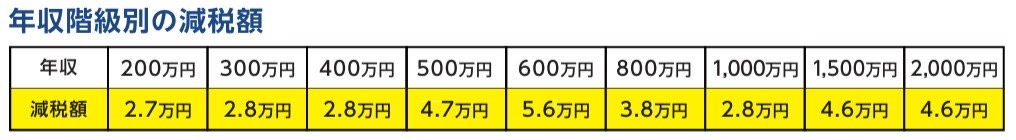 今回の自民党との合意により、ほとんどすべての所得階層の皆様にとって、年間3万円から5万円の減税効果(※)があります。
