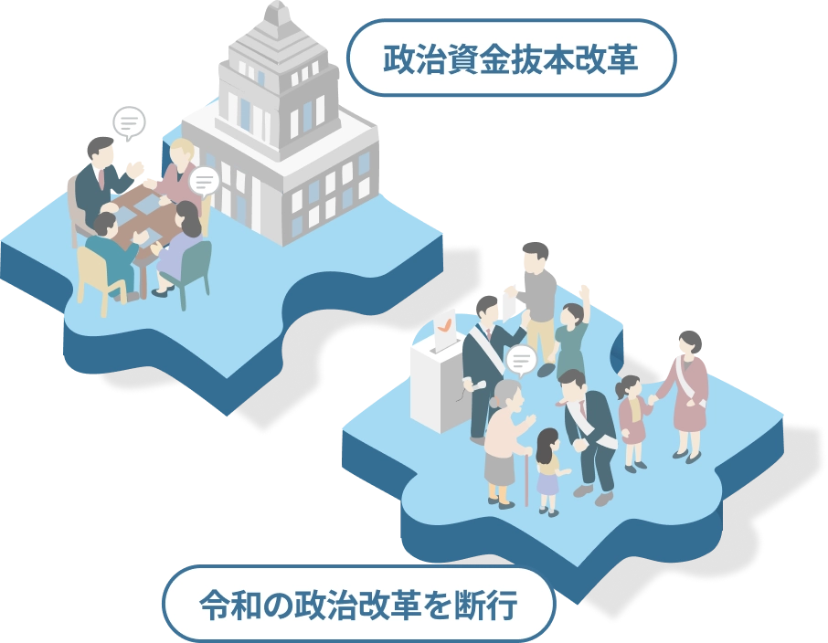 ➀裏金や「非公開・非課税のお金」を許さない。企業団体献金規制強化法案を成立させ、「受け手規制」「献金上限規制」による徹底した透明性向上。政治資金監視委員会設置法案を成立させ、第三者機関による不断の監視を強化